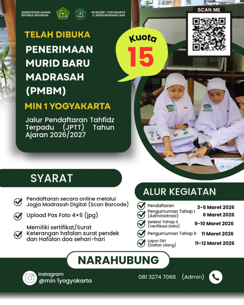 Link Pendaftaran : https://pmbm-mi.jogjamadrasahdigital.net/